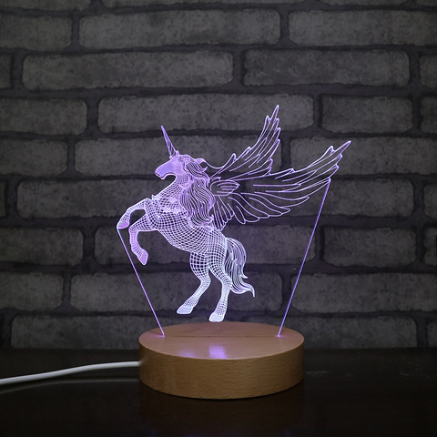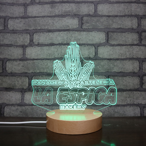 โคมไฟอะคริลิกทำจากไม้แบบ LED 7สีเปลี่ยนได้โคมไฟลวงตา3D ได้