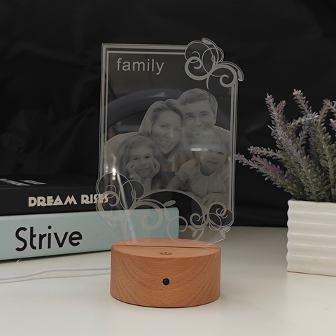 กรอบไม้บีชปรับแต่งได้โคมไฟกลางคืน LED สำหรับเป็นของขวัญอะคริลิกสำหรับเด็ก